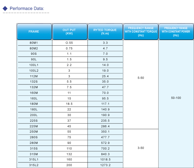 This series of inverter duty motor is the subseries of Y2 series 4 pole motor with IP54 protection. the same rated output motor has the frame same as Y2 series motor except  a  longer overall lenght,    Its electrie performance and installation dimension conform to the relative standards of  IEC -60034.    This motor can  be  powered by general inverter with VVVF control Character.With independent axial blower, this motor (IC416)can get efficient cooling all frequeney range.
