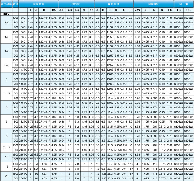 該系列電機(jī)為全封閉三相鼠籠式異步電動(dòng)機(jī)。電氣性能及安裝尺寸均符合美國電氣制造商協(xié)會標(biāo)準(zhǔn)MG1-1998的相關(guān)標(biāo)準(zhǔn),采用F級絕緣,尼馬 C或B設(shè)計(jì)。效率達(dá)到美國EPACT'92及NRCan的效率要求。機(jī)座號從56至250,功率等級從1 / 4到20HP的產(chǎn)品已獲得CSA(“C”及“US”)。證書號為:1414458。該型電機(jī)的軸、機(jī)殼、端蓋、螺釘?shù)冉Y(jié)構(gòu)部件均采用不銹鋼材料。外型美觀光亮,抗腐蝕 ,無鐵銹、清潔衛(wèi)生。可廣泛應(yīng)用于食品,化工等行業(yè)。