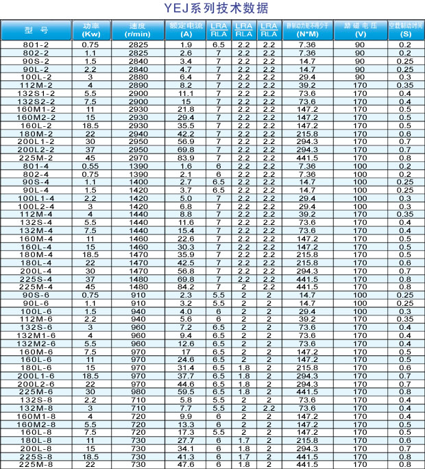 YEJ系列制動電機(jī)型號: